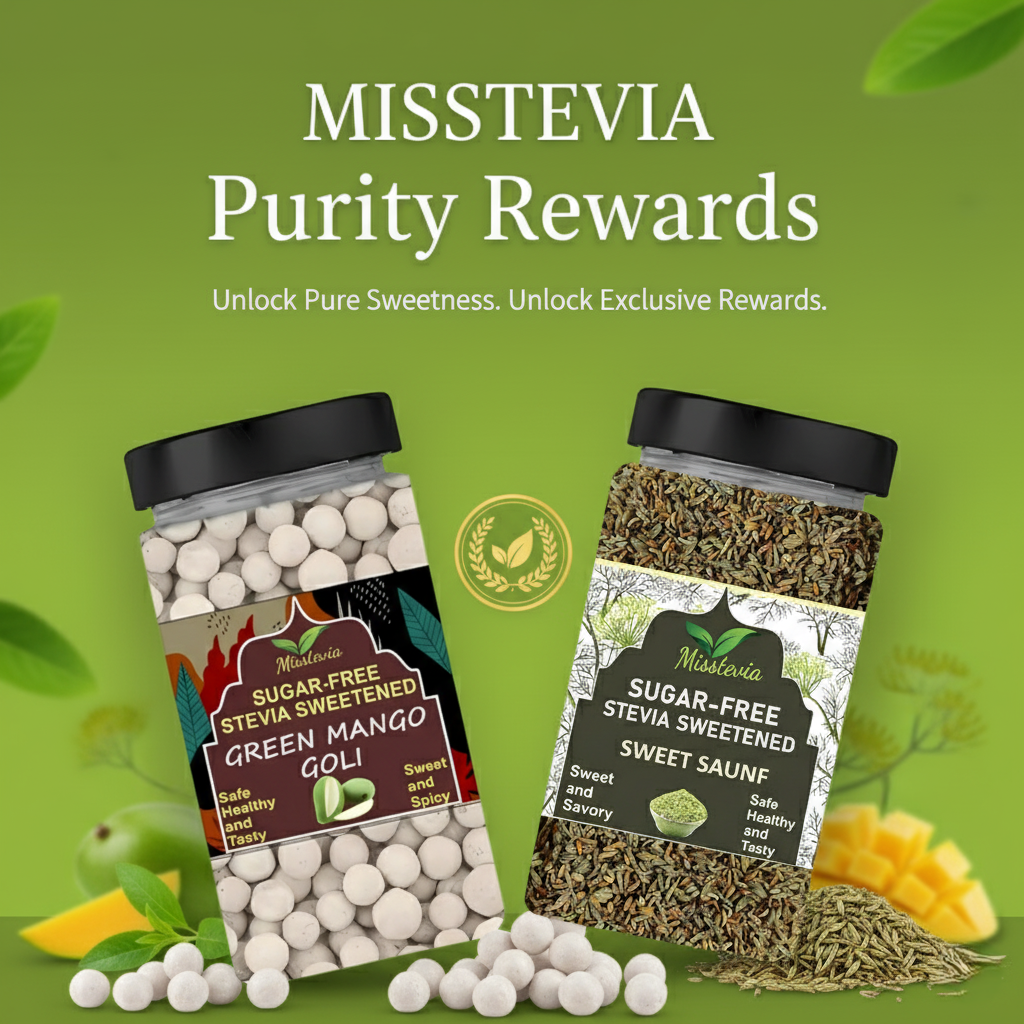 Stevia Credits are the points you earn with every purchase. They are valued at 10 points = ₹1 off.
