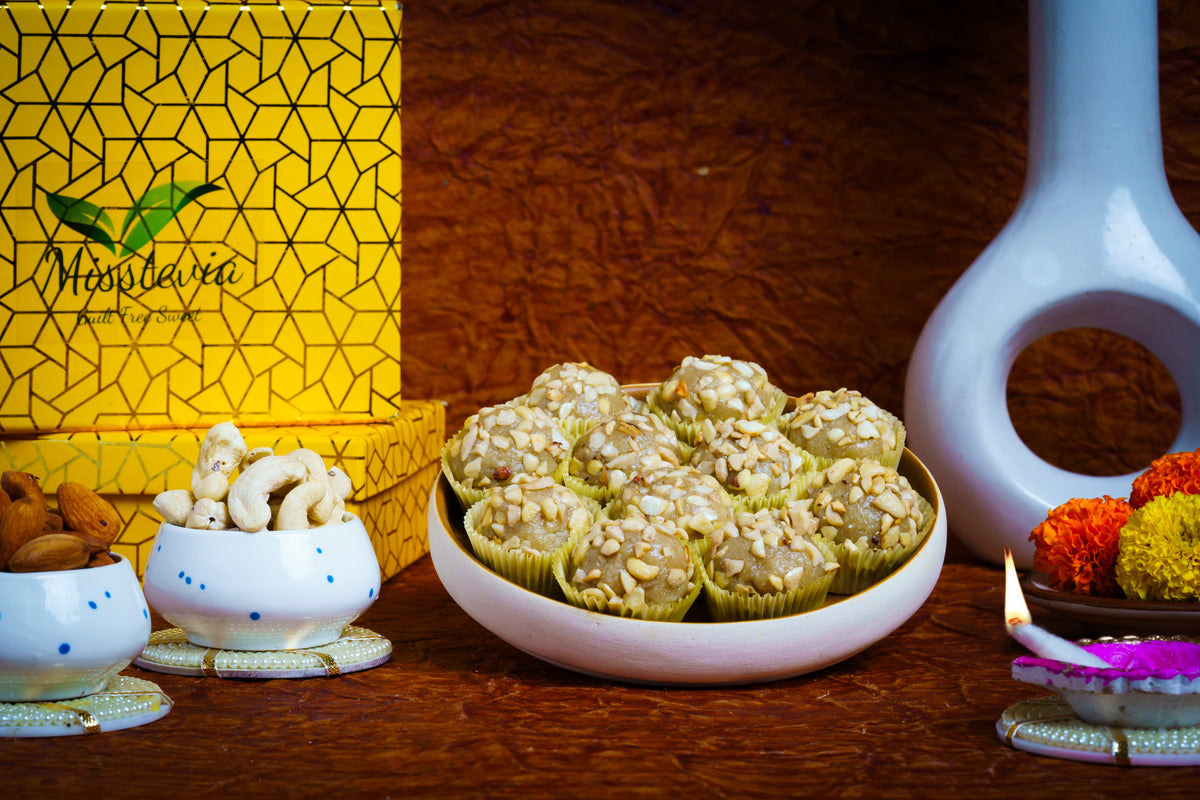 Sugar free Sweets Diwali Gift Box 125g | Cashew Almond Dry Fruit Laddu |Tealight candle &Holder| Healthy Gift Hamper |Perfect Festival Gift Kaju Mithai| Kids & Diabetic Friendly